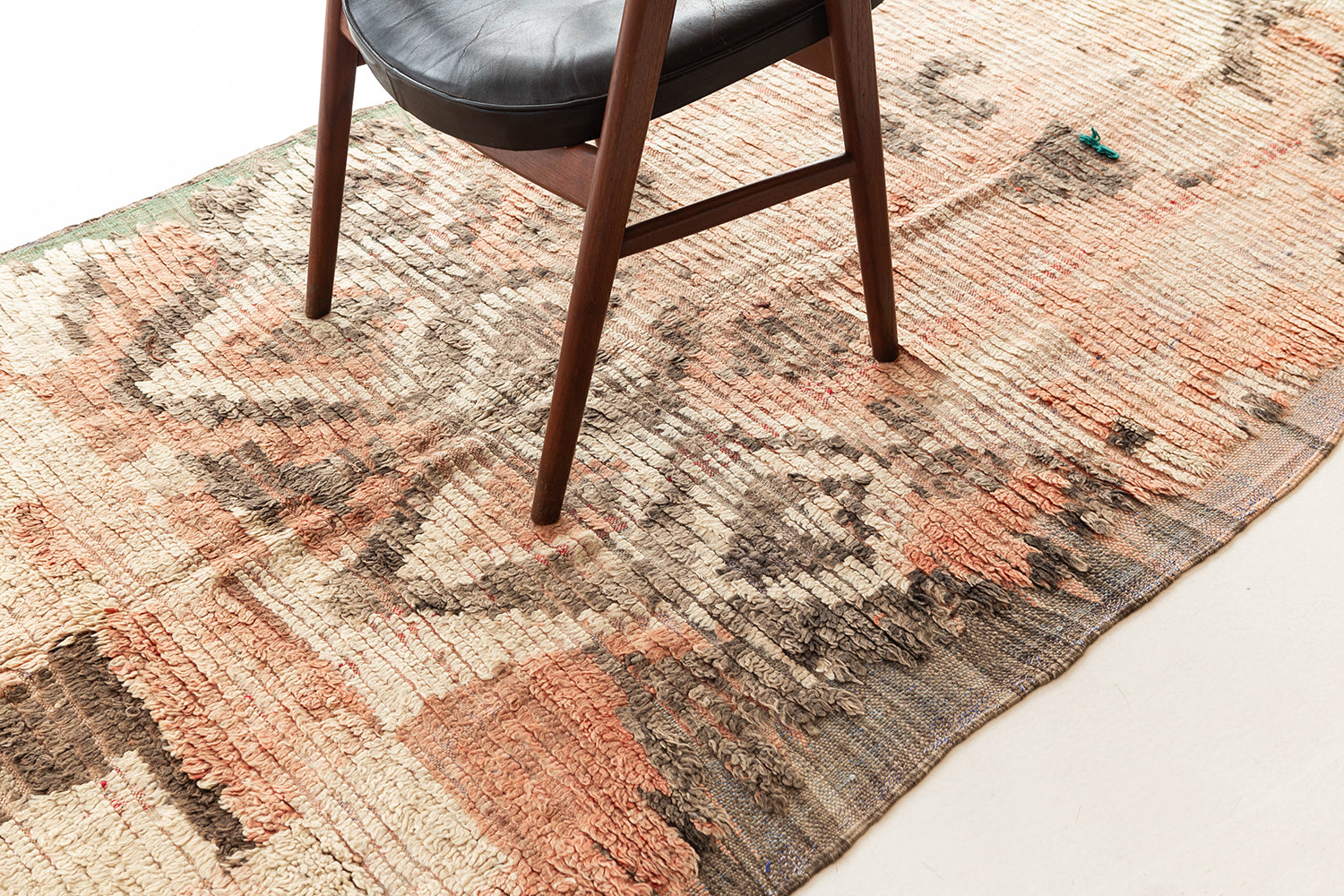 A gorgeous Vintage Moroccan from the High Atlas tribes of Morocco. The rug's beautiful taupe, pink, ivory, and coral colors create a playful color scheme in addition to the Pink Moroccan Rugs charming texture and symbolic imagery. This antique piece will bring excitement to any space. Explore our unique Atlas Rugs