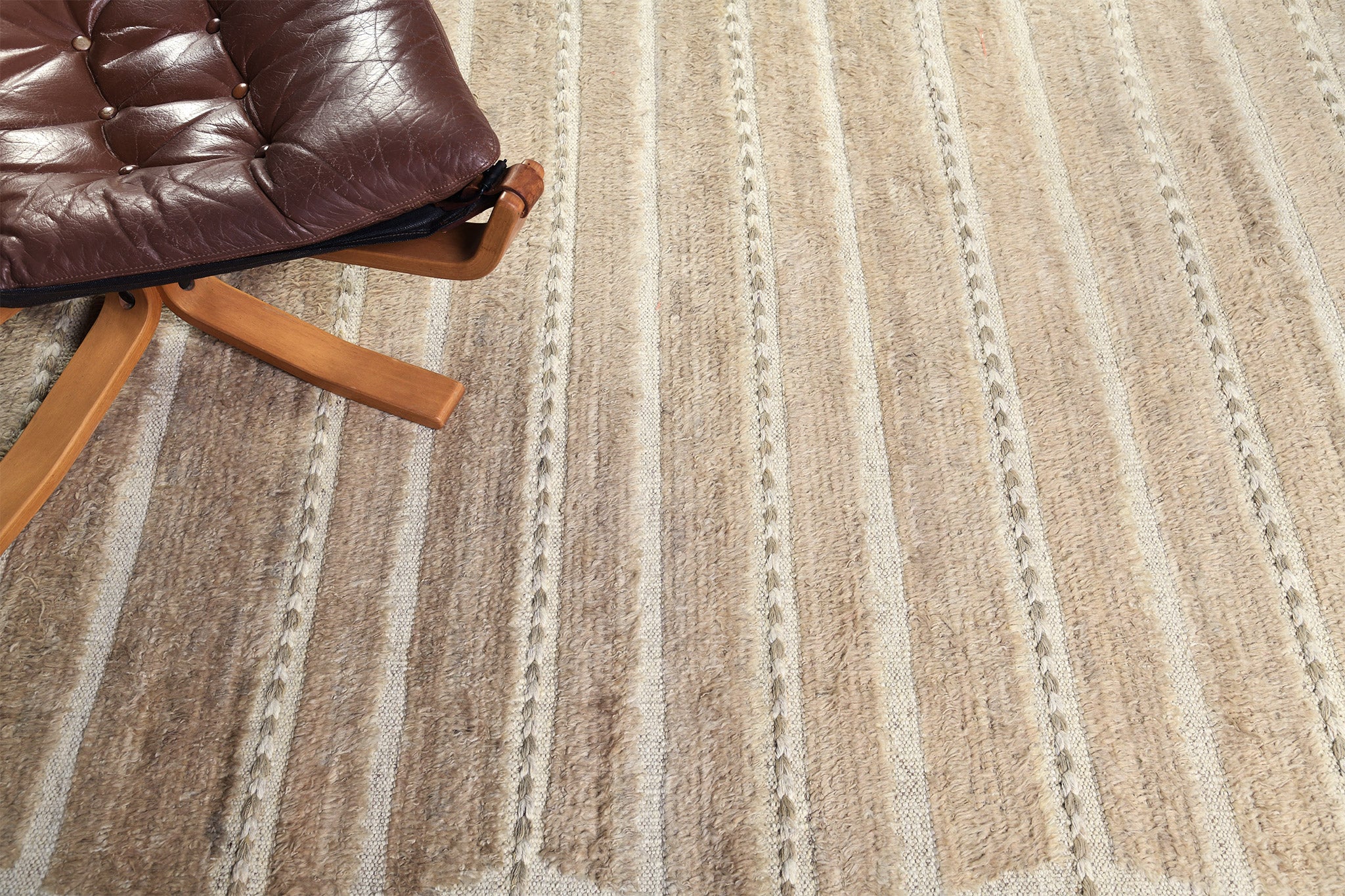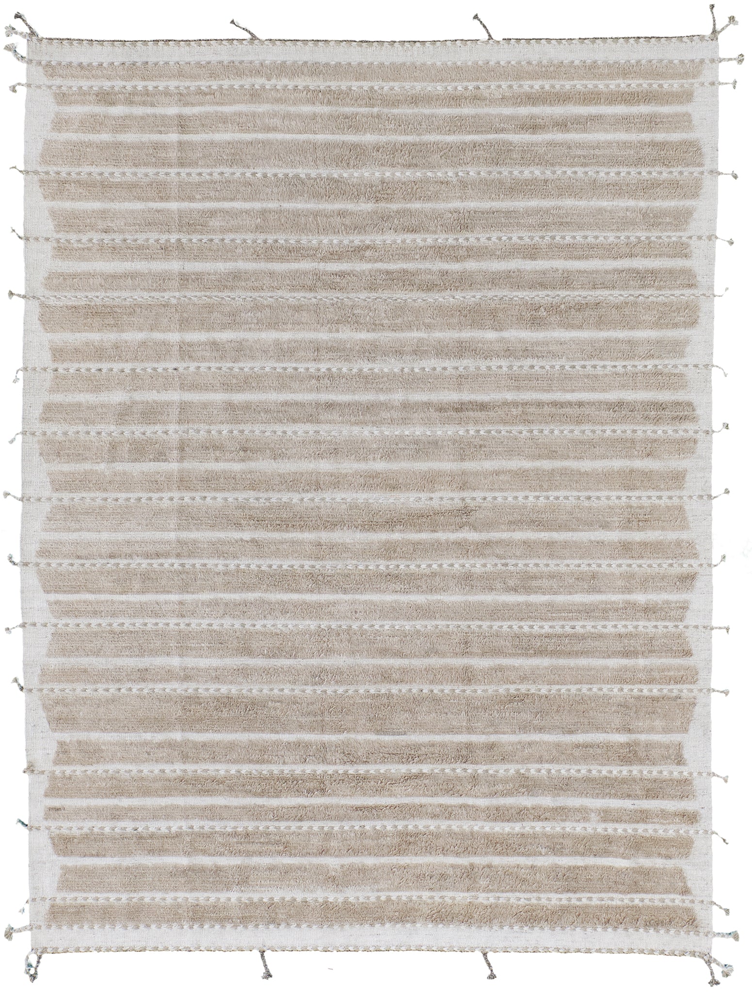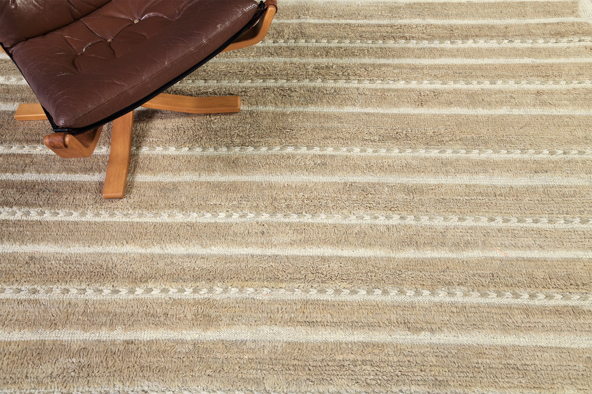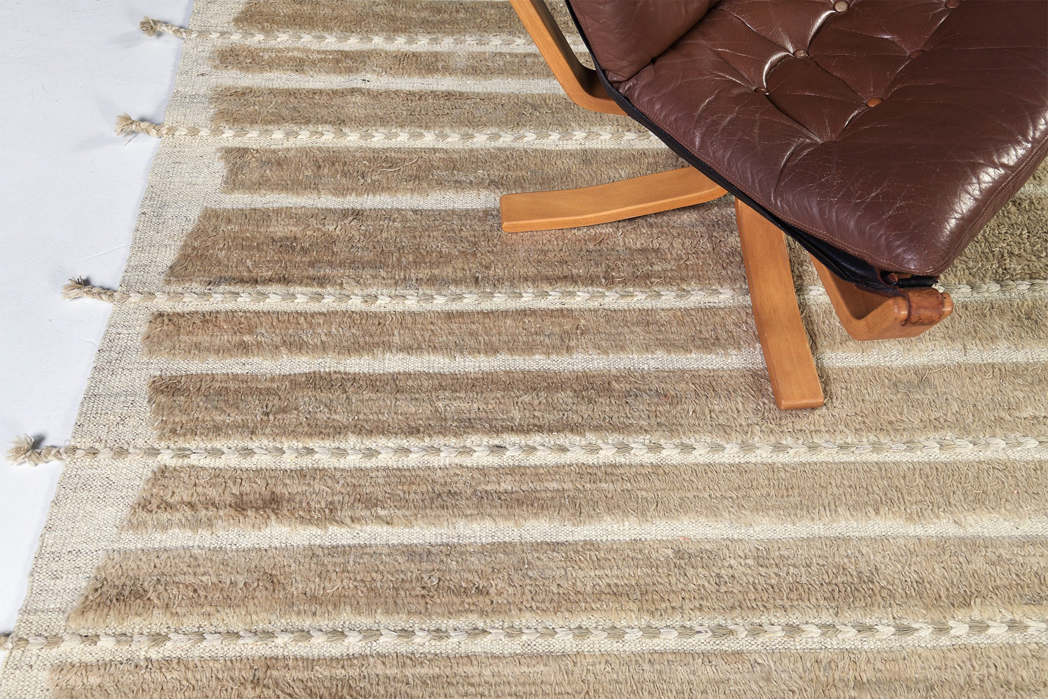 Abrolhos is a Mehraban classic. Rows of pile with a zigzag border of flatweave and horizontal braid detailing. Simple elegance that fits in a wide array of settings
