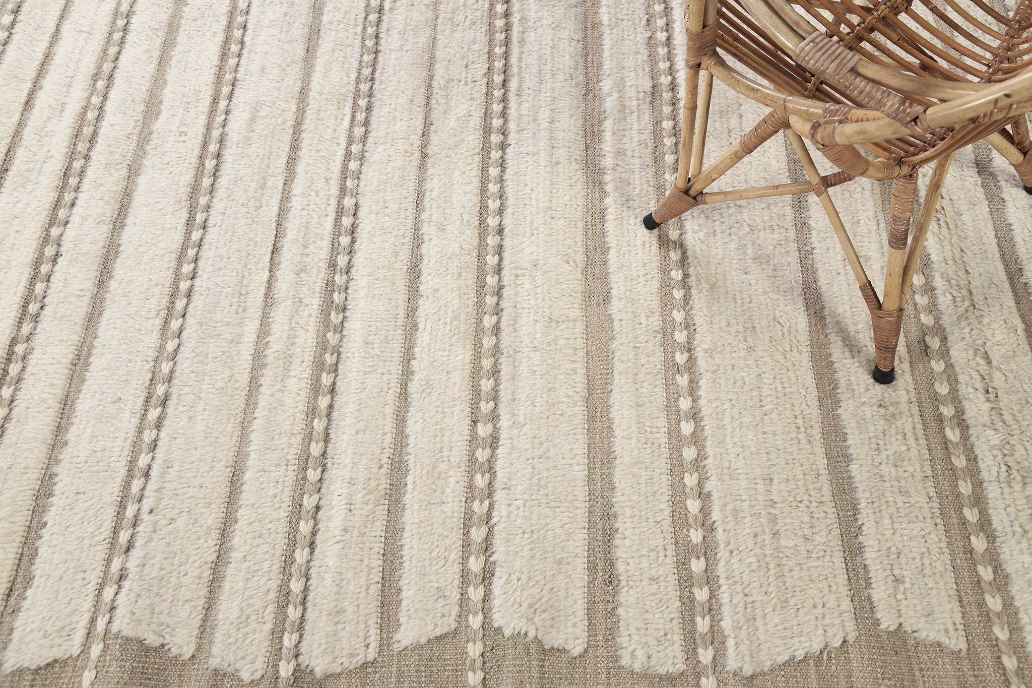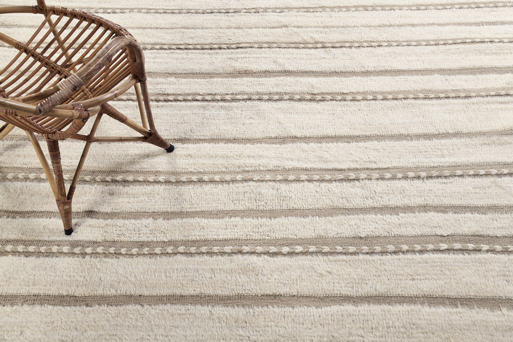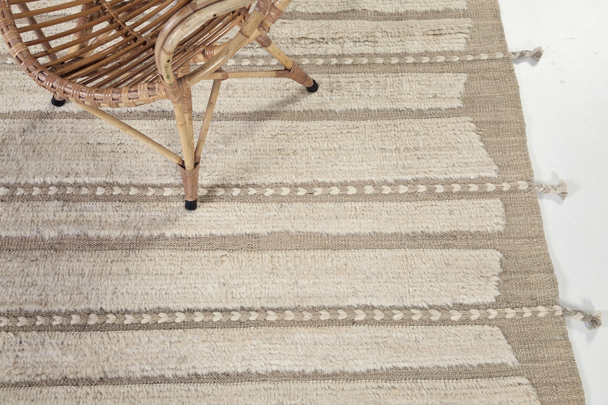 Abrolhos is a Mehraban classic. Rows of pile with a zigzag border of flatweave and horizontal braid detailing. Simple elegance that fits in a wide array of settings