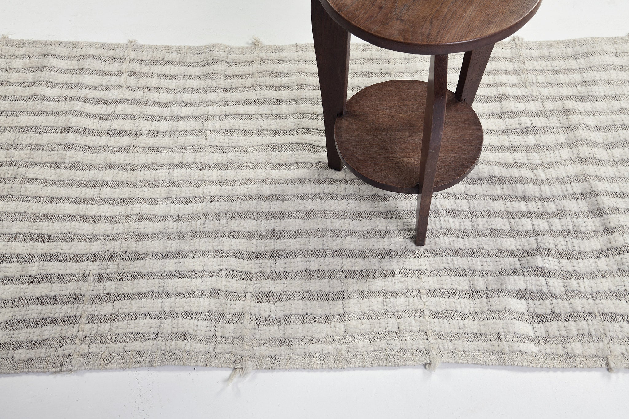 The Fohn rug is a go to basic with vertical stripes of alternating pile and embossed flatweave in a village-style construction.
