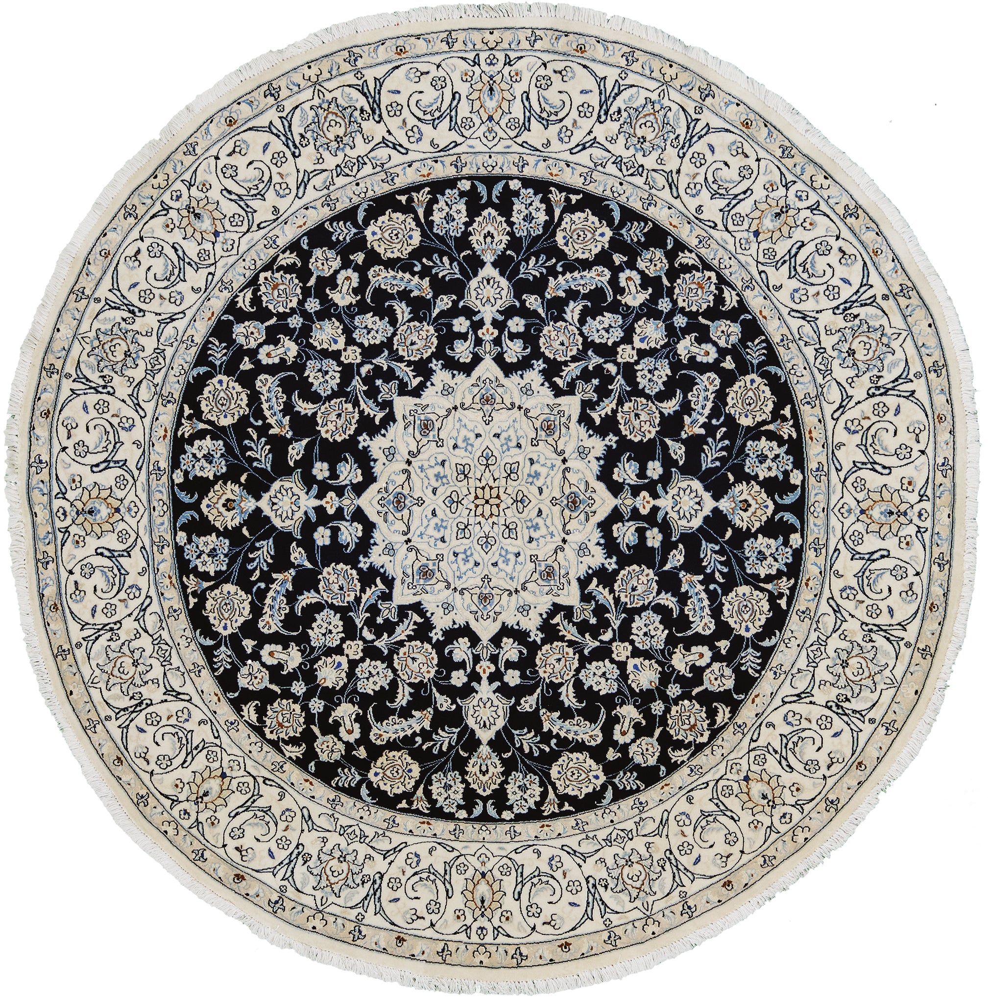 Fine Persian Naein Round Rug