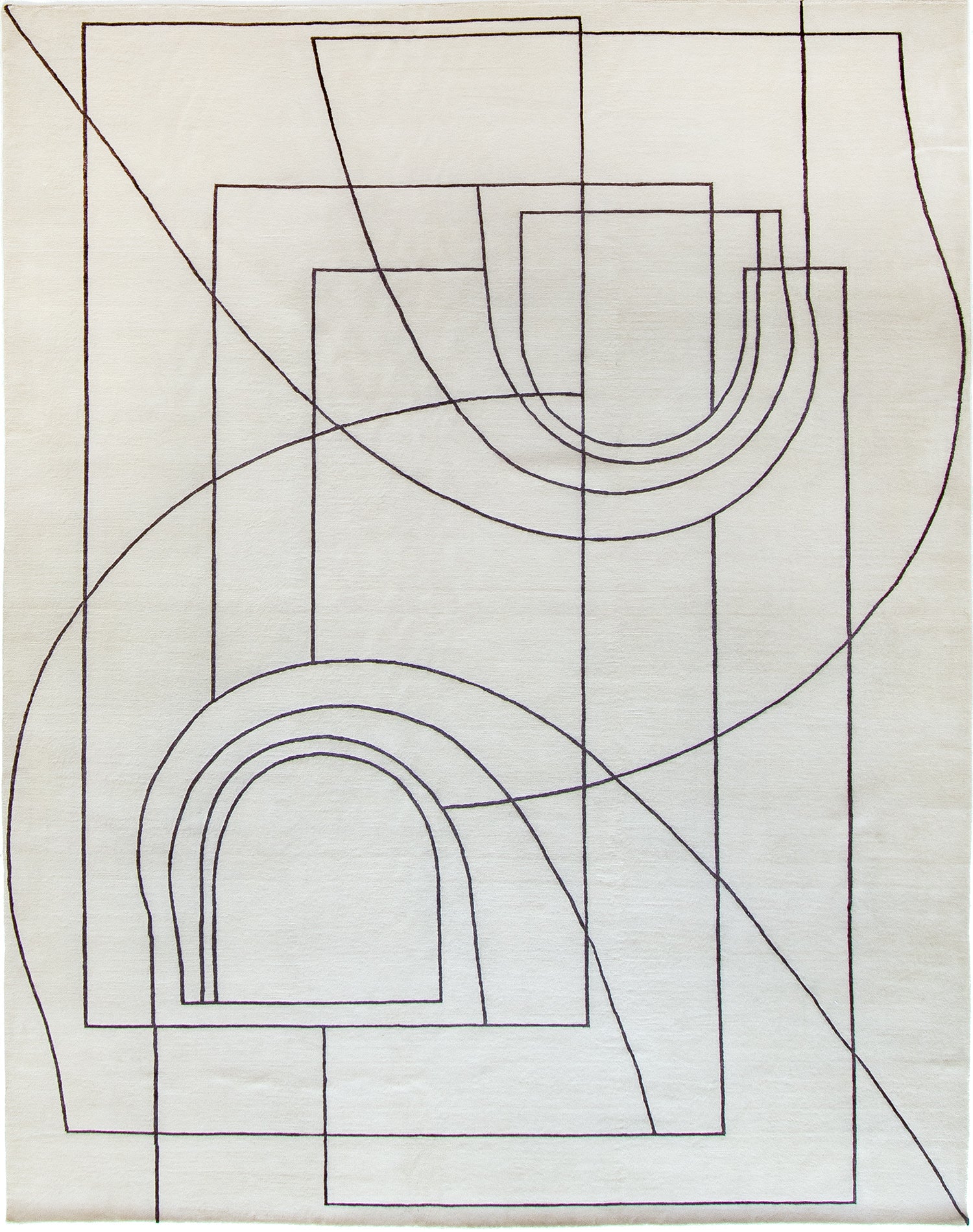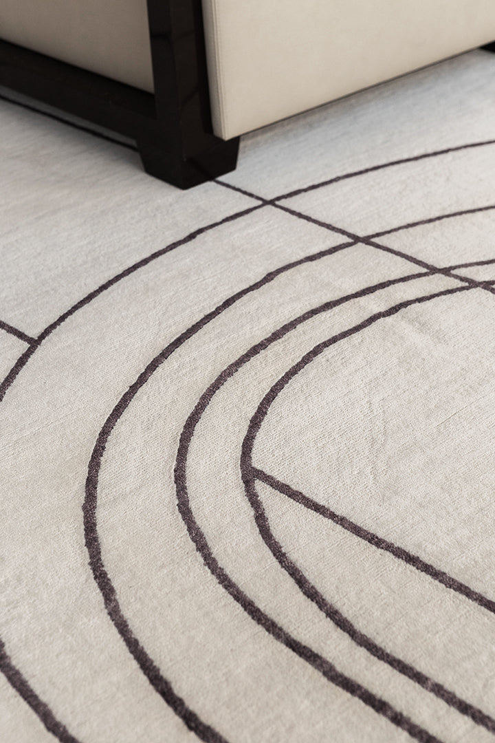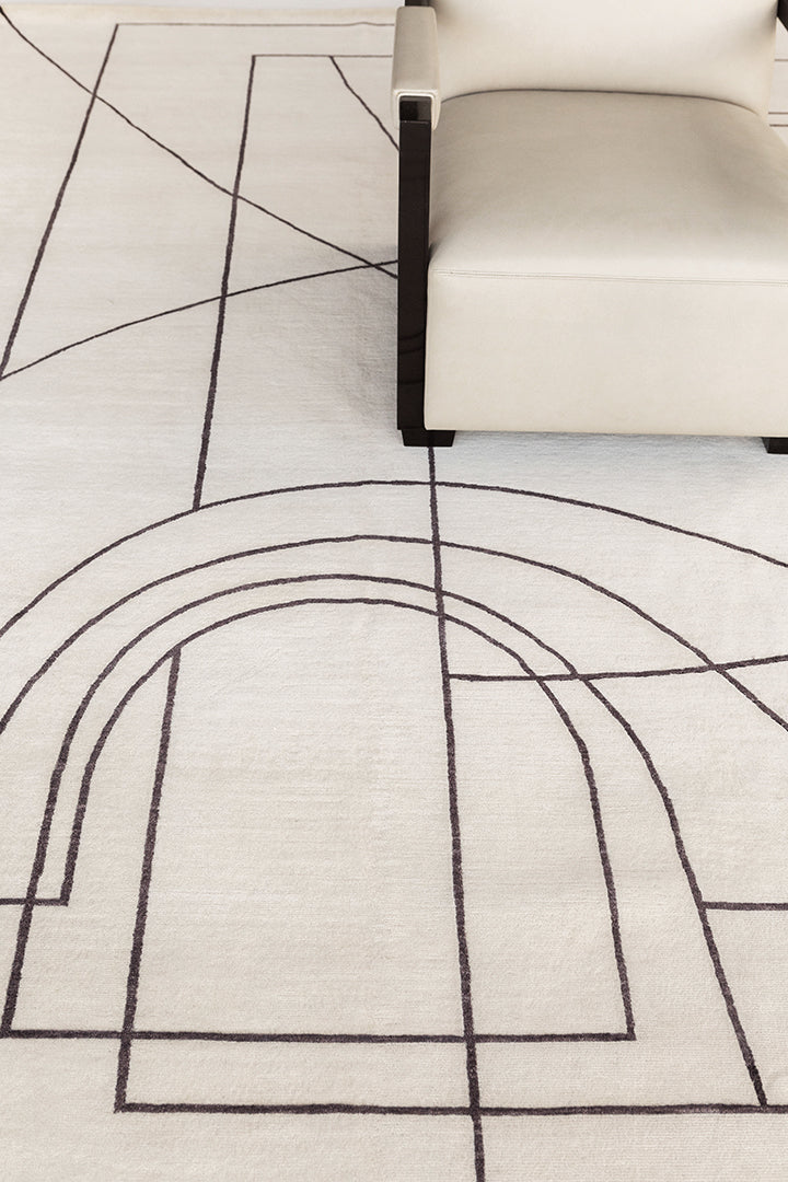 Inspired by a black and white photograph of Italian archways, this linear motif rug is a play on light and architecture.
